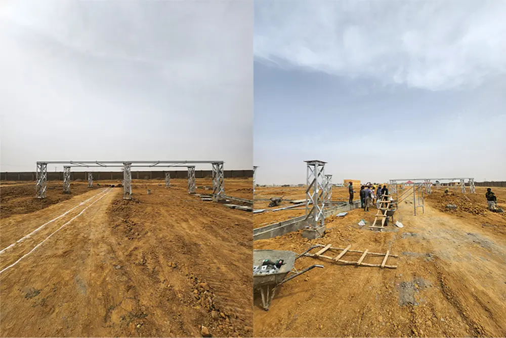 35.6도에 달하는 현지 기온에도 제작진은 발 빠르게 움직이고 있다. 이제 아연도금 강철 부품이 바닥에 놓여 제자리에 놓일 준비가 되었습니다. 이러한 구조는 330kV 변전소의 높은 수요를 처리하고 지역 전력망의 장기적인 안정성을 보장하도록 제작되었습니다.